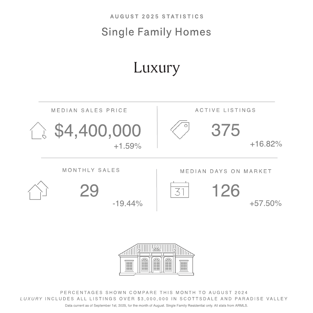 Median Days on Market for Scottsdale Single Family Homes: 71 – up 14.51% from August ‘24.